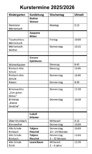 Weitere Kurse in den Gemeinden Birkenau, Fürth, Grasellenbach, Mörlenbach und Rimbach sind in Planung. Die Jugendmusikschule wird darüber in der Presse und auf ihrer Homepage informieren.